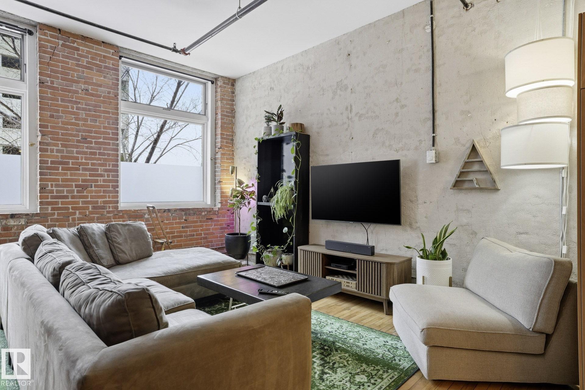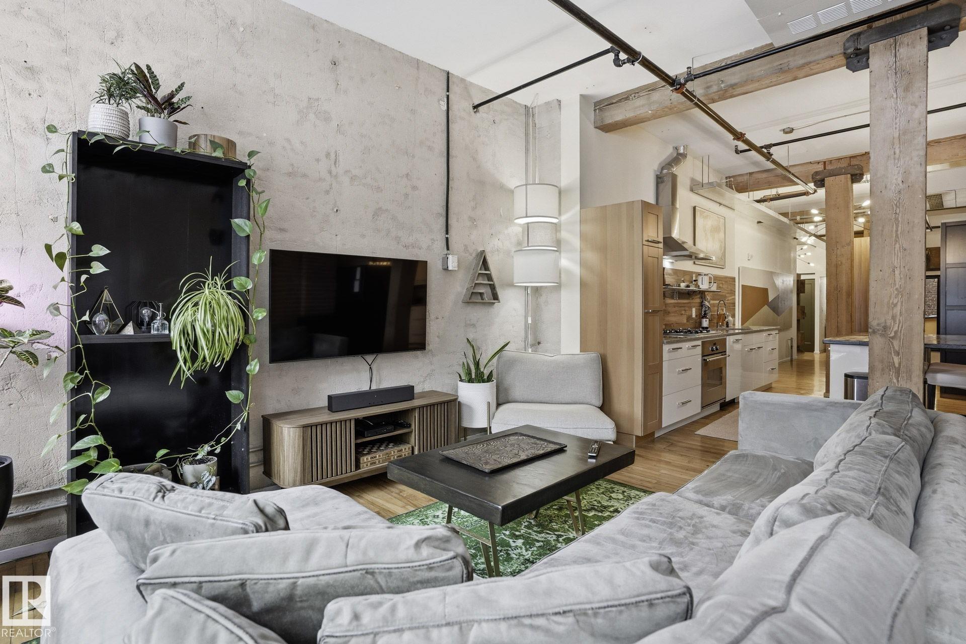 Welcome to Cobogo Lofts in the heart of downtown Edmonton, right on 104 Street and steps to some of the city’s best restaurants, markets, nightlife, and the Ice District. Just under 1,100 sq ft, this bright studio loft offers the ultimate 104 Street vibe with space to truly live and entertain. The entry features great storage and in suite laundry, leading into a fully upgraded kitchen that flows seamlessly into a large dining area and generous living room, all framed by massive windows that flood the space ...