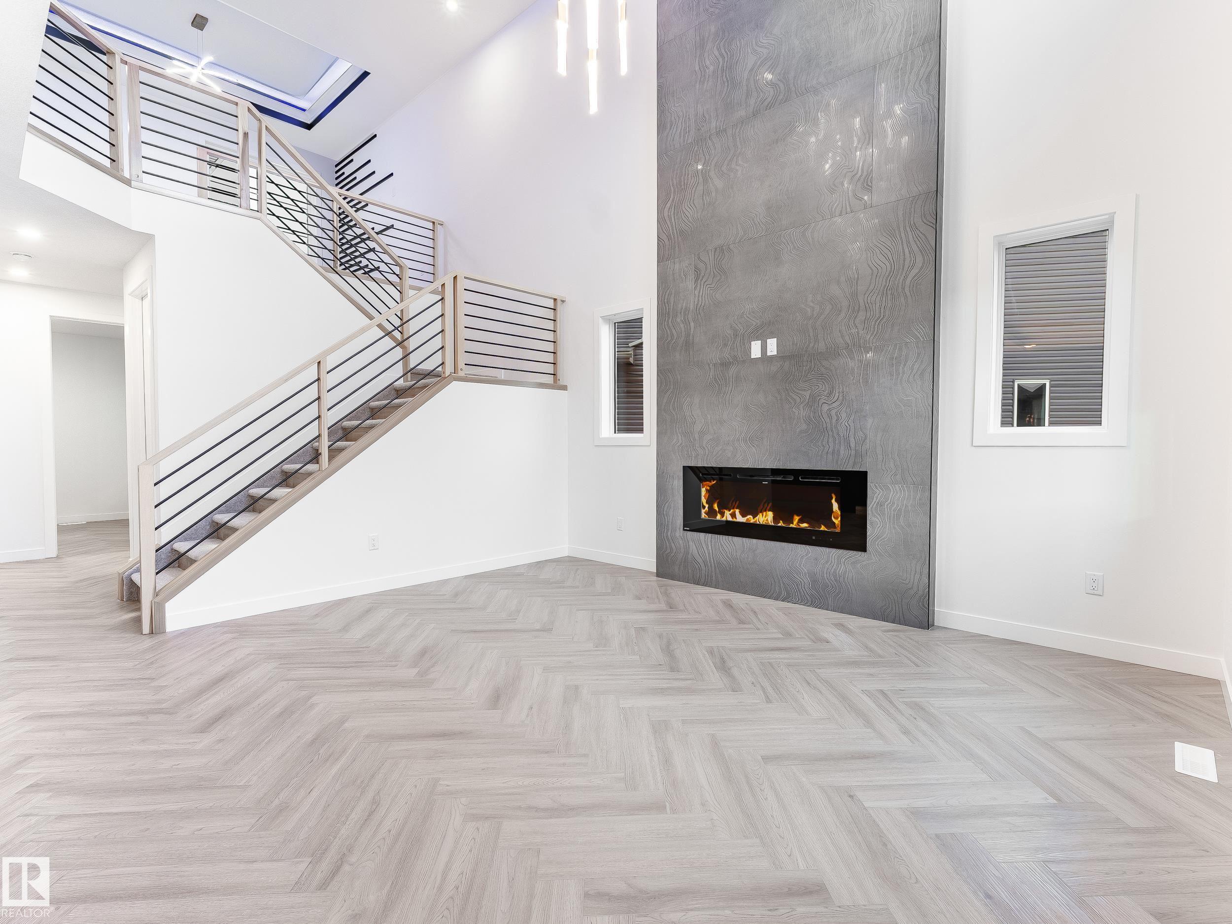 This brand-new upgraded detached home with a double car garage offers an exceptional blend of luxury and functionality. The main entrance opens to a grand open-to-above living area, setting the tone for the spacious design throughout. The home features two living spaces , both open to above including a cozy family area with a beautiful feature wall and fireplace. The main floor also includes a bedroom with a full bathroom. The stunning extended kitchen boasts a large center island and a massive spice kitche...