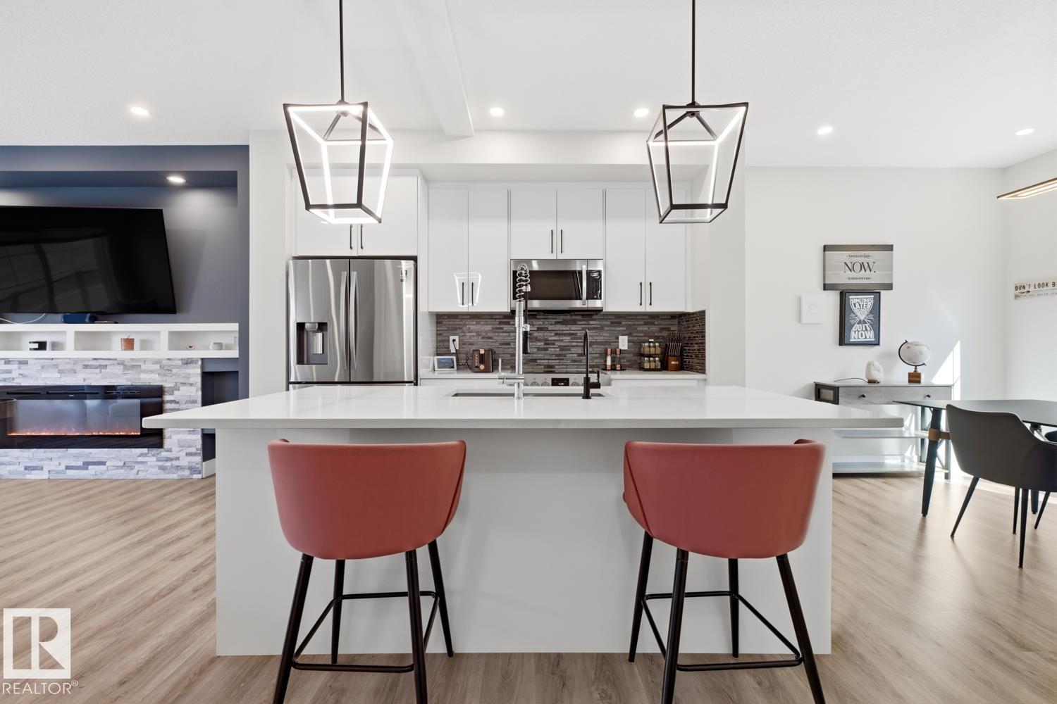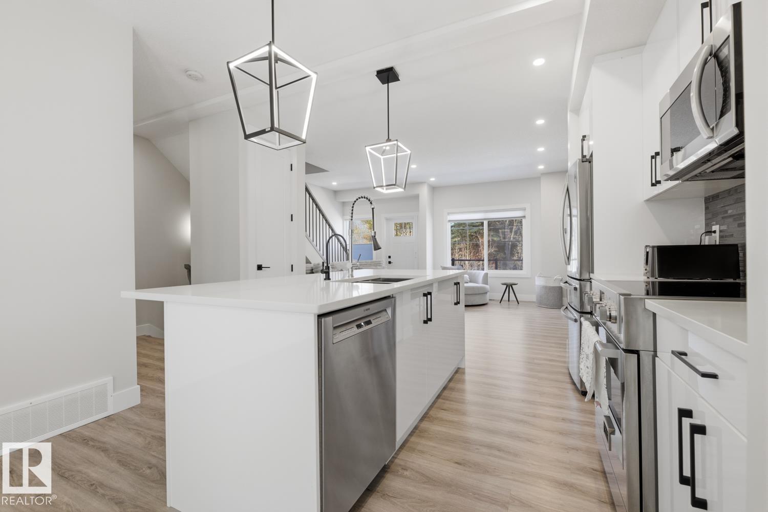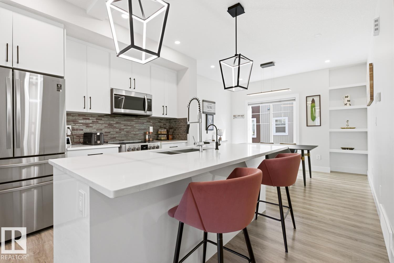 Serene views over treed land in Edgemont—privacy, no neighbours looking in, and a true sense of tranquility. End-unit LUX townhouse with double attached garage, patio, balcony, and A/C. This 3-level executive home offers a bright, open layout with upgrades throughout: iron railing, quartz countertops, stainless steel appliances, 5’ linear fireplace with stone mantel, luxury vinyl plank flooring, beautiful tile, and added retractable screens that tuck away neatly. Ground level features a versatile office/fl...