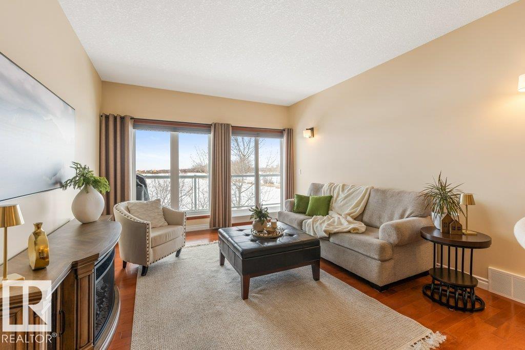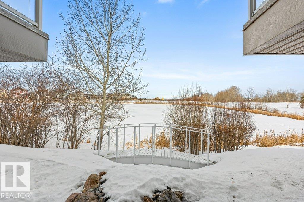Gorgeous 45+ walkout bungalow condo backing onto a serene lake with stunning, private views! This elegant, open-concept 1,111 sq. ft. home features a spacious front entry with ceramic tile, skylight & warm wood accents throughout. The dream kitchen offers granite countertops, ample cabinetry & top-of-the-line appliances, all overlooking the bright dining & living area with access to a glass-railing balcony capturing beautiful lake views. The main floor includes two bedrooms, a 3-pce bath & convenient laundr...