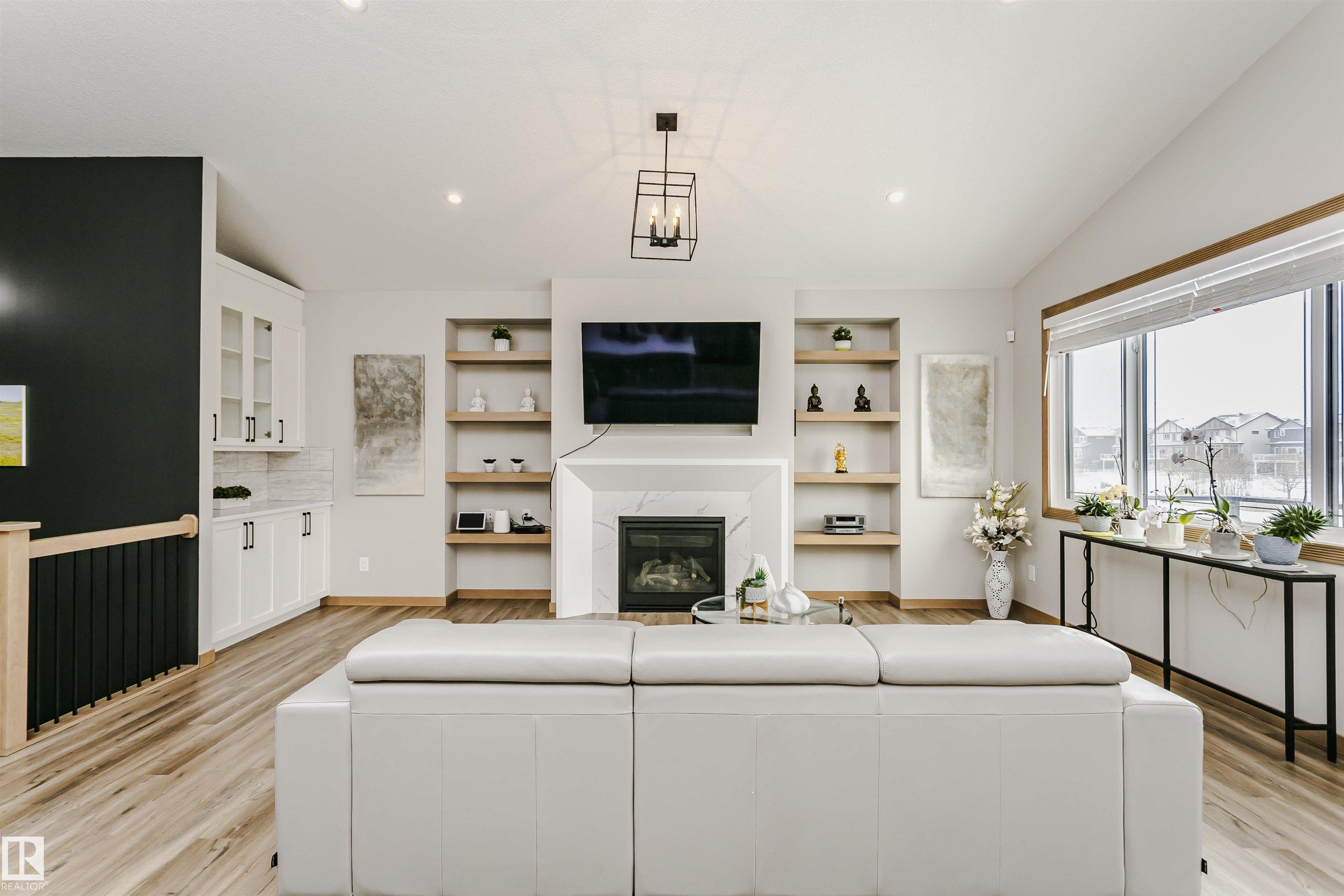 Welcome to this stunning bungalow that perfectly blends comfort and style. The spacious primary suite is conveniently located on the main floor, featuring a luxurious four-piece bathroom and a generous walk-through closet. The heart of the home boasts a bright white kitchen equipped with modern appliances and a large island. Step outside the dining area to enjoy a spacious deck that overlooks a picturesque pond. The living room features a dry bar and built in shelving on either side of the fireplace. The ...